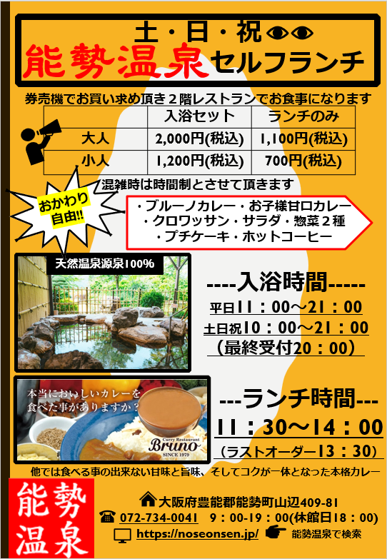 能勢温泉は、自家源泉100%の天然温泉。